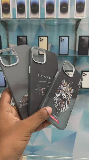 A sleek navy-blue iPhone case featuring a bold “BOSS” branding on the back, complemented by a metallic-textured camera ring for a premium and modern look.